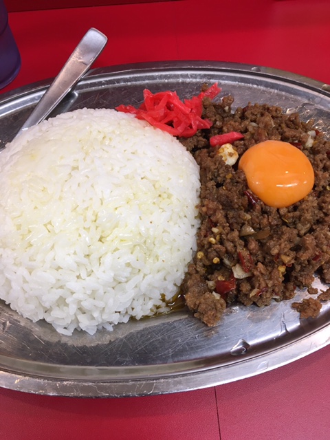 マシライスは甘辛いひき肉に背脂を混ぜたものなので、背脂好きにはたまらないですね(∩´∀`)∩