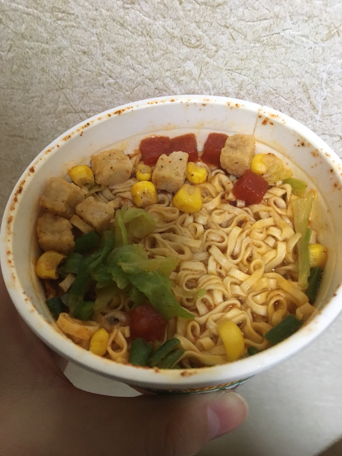 お湯を注ぐと普通の美味しいチリトマト味です