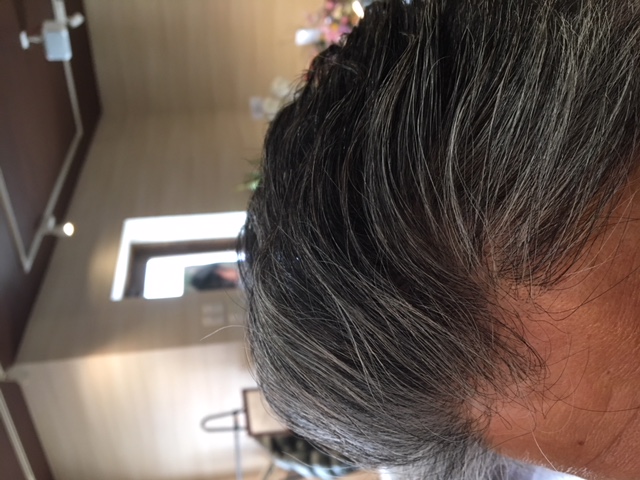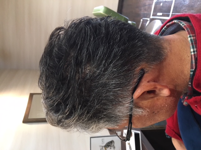 普段はオールバックスタイルなので、前髪からつむじより少し後ろにパーマをかけます。