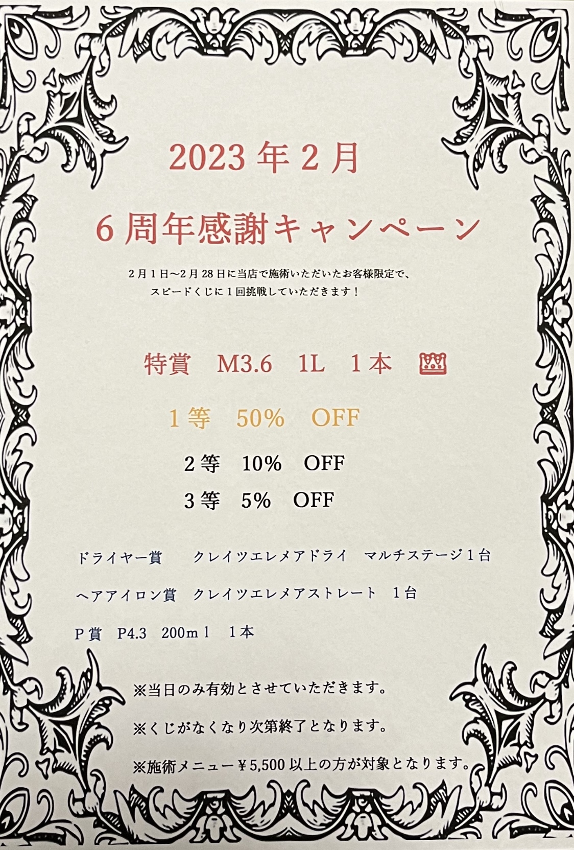 2月は感謝キャンペーンを開催いたしておりますので、ぜひお越しください!